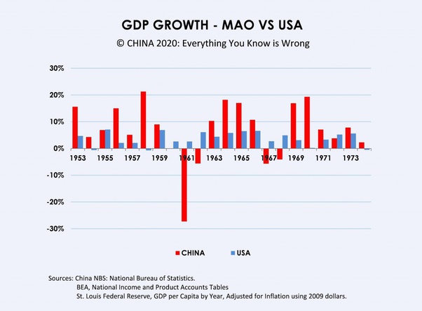 “ From 1953–1978 (encompassing both decades), Chinese official statistics report average annual real GDP growth of ~6.7%, though some economists (e.g., Angus Maddison) estimate closer to 4–5% after adjustments for potential overstatement.” (Grok)