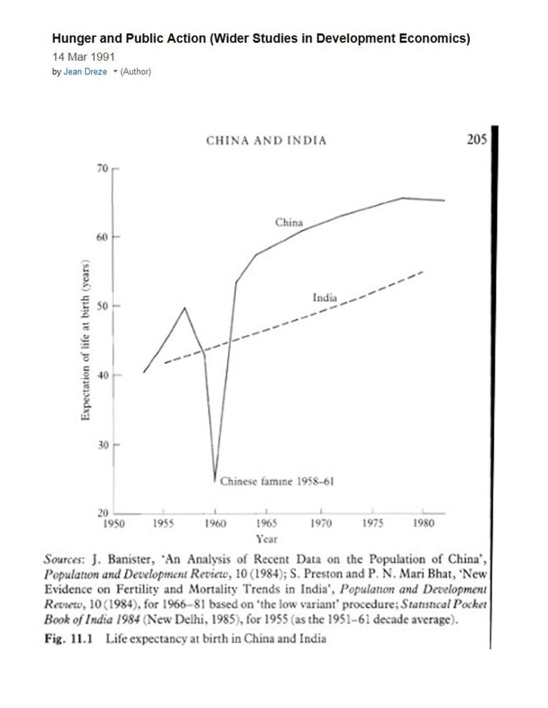 Lives shortened in 1959 to 1961 would probably have ended rather sooner without Mao’s intense radicalism and successful reforms between 1949 and 1958. The Republic of India greatly improved on British-elite rule over the same period. But looking at the entire 28 calendar years of Mao’s rule, India was less successful both economically and in terms of extending human lives.